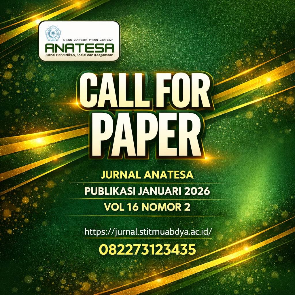 Anatesa : Kajian Pendidikan, Sosial, dan Keagamaan merupakan publikasi akademis yang menyajikan tulisan-tulisan ilmiah yang mendalam dan terkini dalam bidang pendidikan, sosial, dan keagamaan. Jurnal ini bertujuan untuk menjadi wadah bagi para peneliti, akademisi, dan praktisi yang ingin berkontribusi dalam pengembangan pemahaman terhadap isu-isu kritis dalam ketiga ranah tersebut.